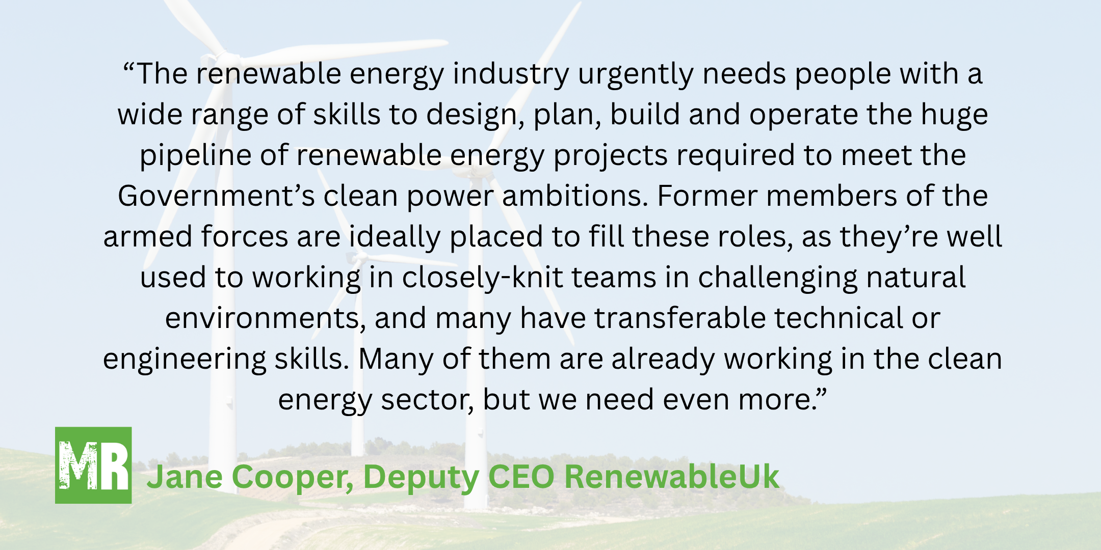 Mission Renewable is the Armed Forces engagement initiative for the UK Renewable Sector. Formed to harness the opportunity for skills migration from the veteran community into jobs in the clean energy sector and addresses the transitional needs of service leavers at the same time.