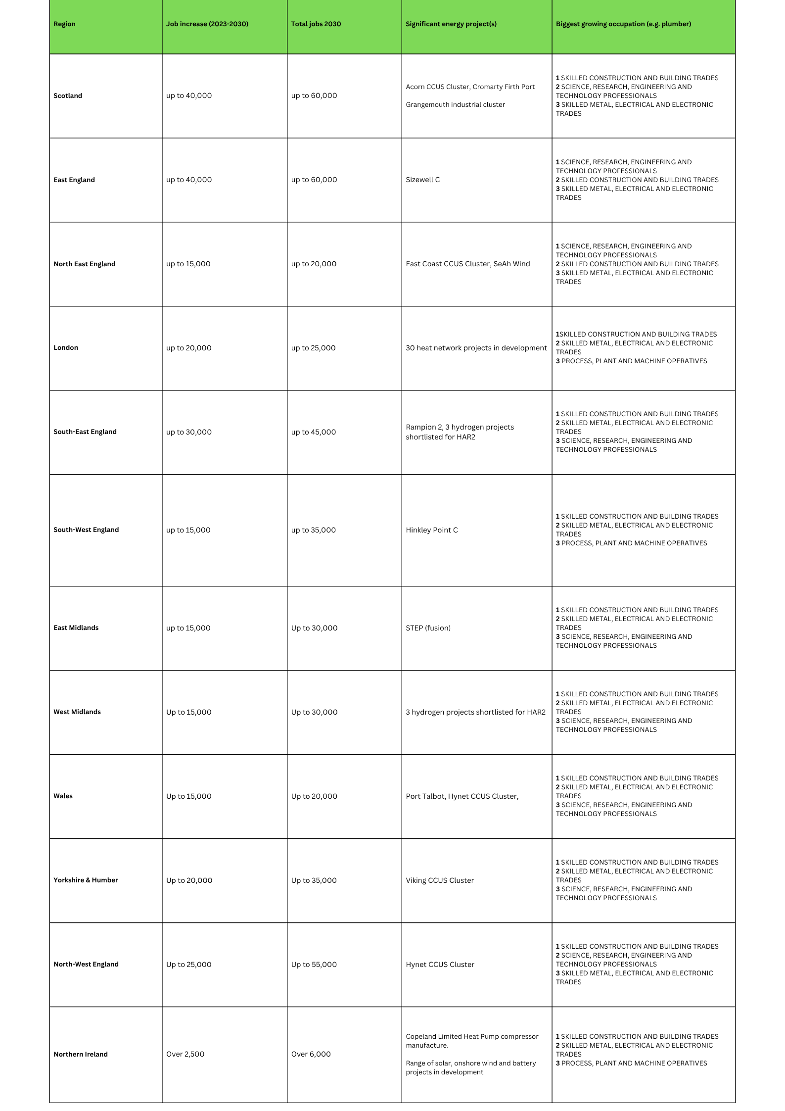 Backed by record government and private sector investment in clean energy such as renewables and nuclear, the clean energy economy is sparking a boom in demand for good industrial jobs in all regions and nations of the UK – with 31 priority occupations such as plumbers, electricians, and welders particularly in demand.